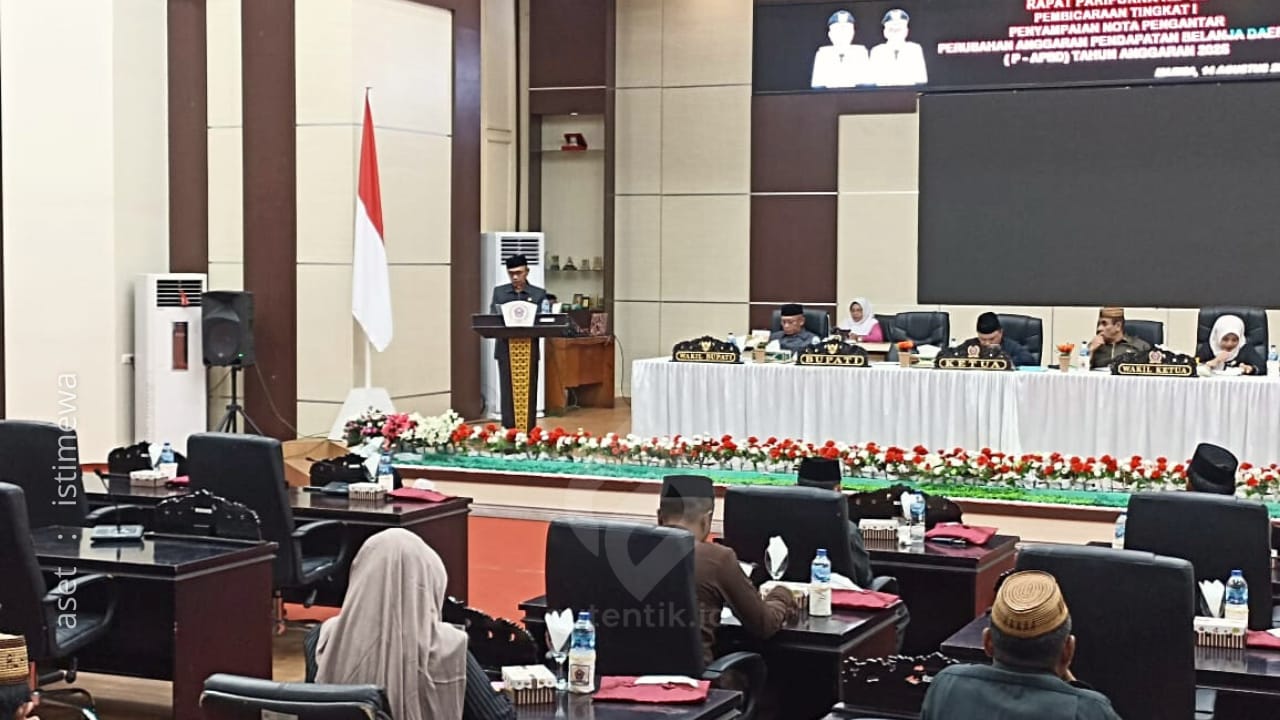 Rapat yang berlangsung di ruang sidang utama DPRD Pohuwato itu dipimpin langsung oleh Ketua DPRD Beni Nento, didampingi Wakil Ketua I dan II. Hadir pula Bupati Pohuwato Saipul A. Mbuinga, Wakil Bupati Iwan S. Adam, unsur Forkopimda, pimpinan OPD, Kapolres Pohuwato, serta Dandim 1313 Pohuwato.