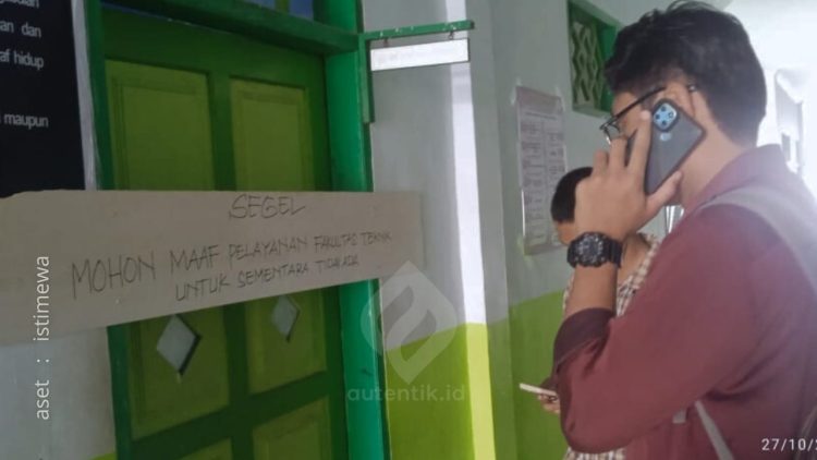 Autentik.id, News – Suasana di lingkungan Universitas Pohuwato mendadak mencekam. Aktivitas pelayanan administrasi akademik yang biasanya ramai kini berubah sunyi setelah ruang Fakultas Teknik ditemukan disegel dengan tulisan mencolok bertuliskan “Mohon Maaf, Pelayanan Fakultas Teknik Untuk Sementara Tidak Ada.”