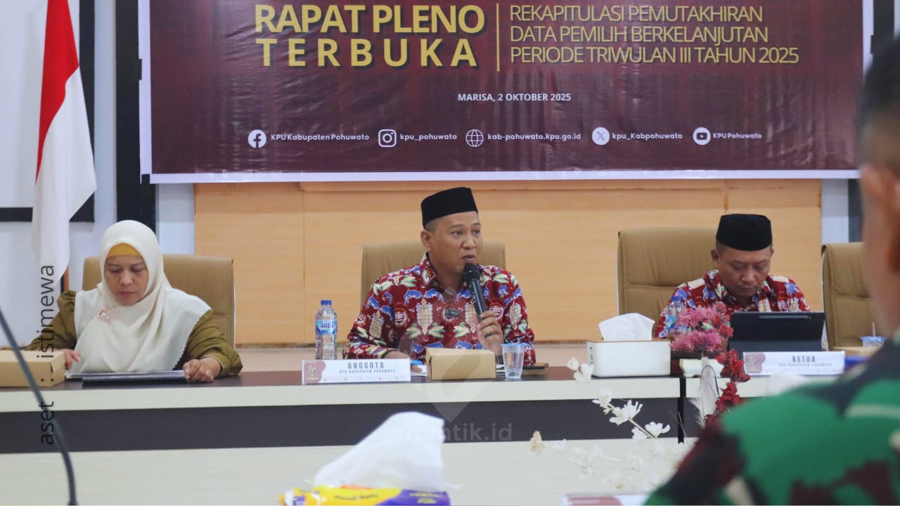 Autentik.id, Pemilu – Komisi Pemilihan Umum (KPU) Kabupaten Pohuwato menetapkan jumlah Pemutakhiran Data Pemilih Berkelanjutan (PDPB) Triwulan III Tahun 2025 sebanyak 115.912 pemilih. Penetapan ini dilakukan melalui Rapat Pleno Terbuka yang digelar di Gedung B Kantor KPU Pohuwato, Kamis (2/10/2025).